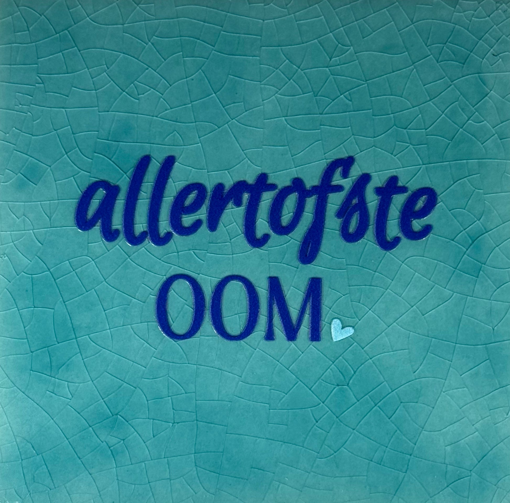 Quote tegeltje 'allertofste oom' groen/kobalt(warmblauw)