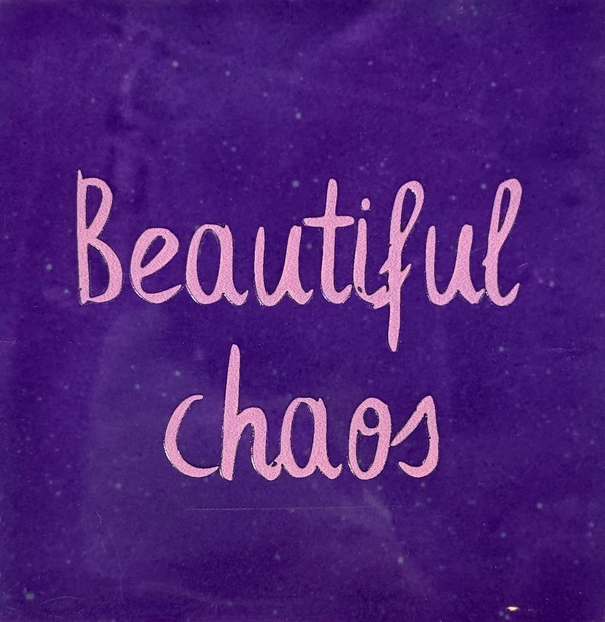 Quote tegeltje 'beautiful chaos' paars/warmblauw