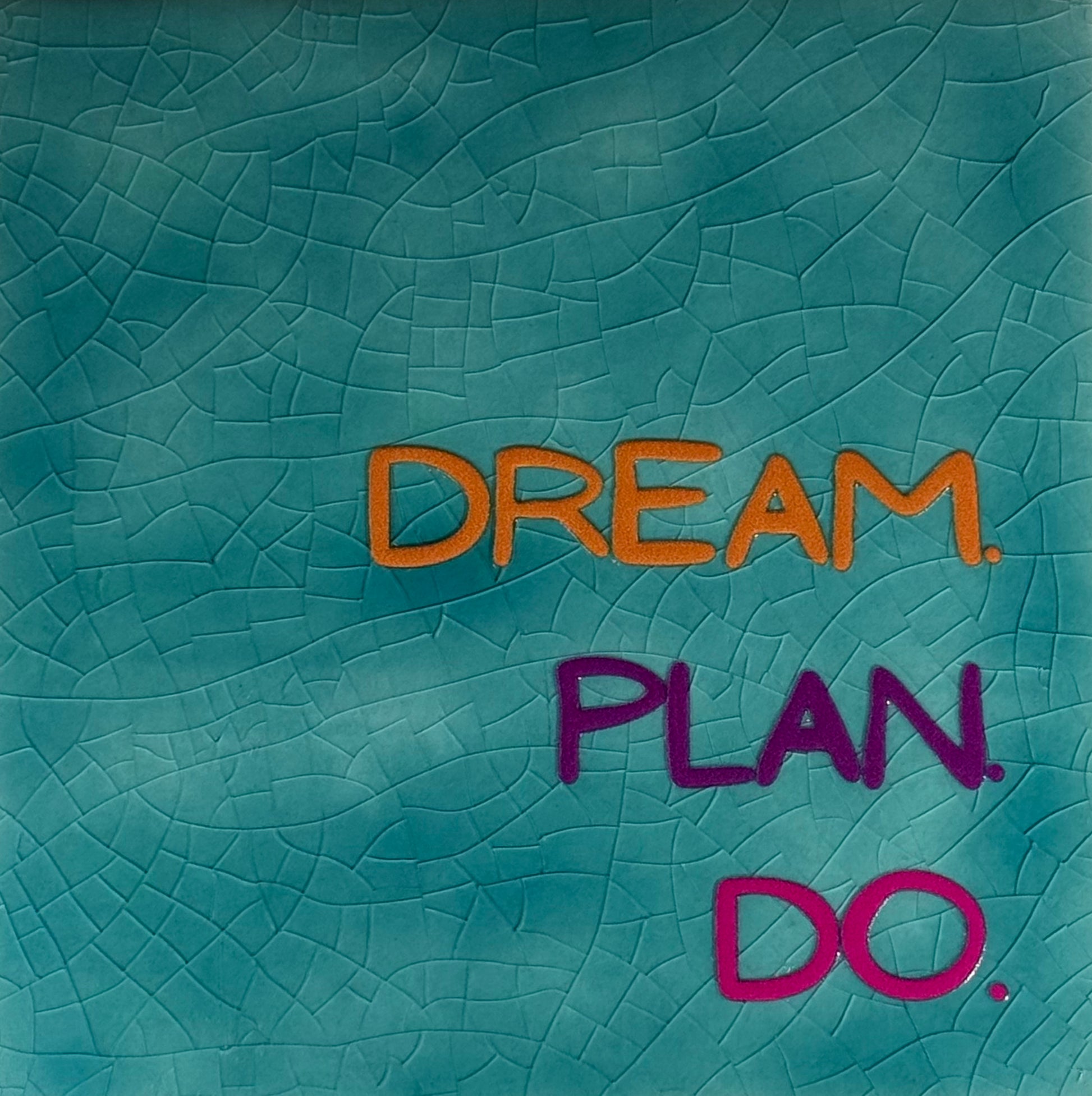 Quote tegeltje 'dream plan do' groen/oranje (paars-knalroze)
