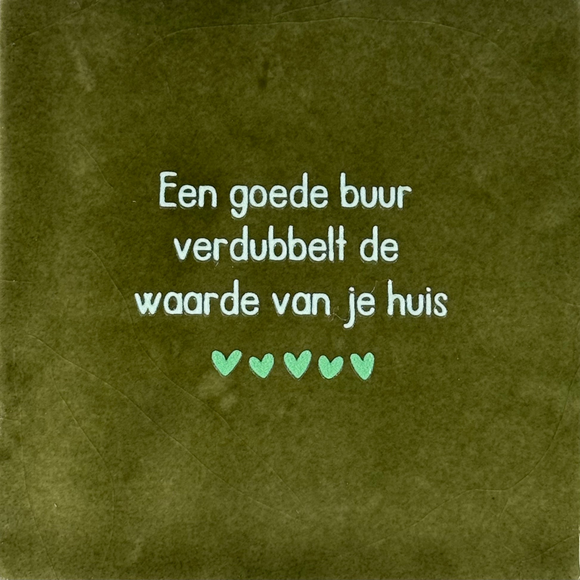 Quote tegeltje 'een goede buur verdubbelt...' olijf/lichtgroen(mint)
