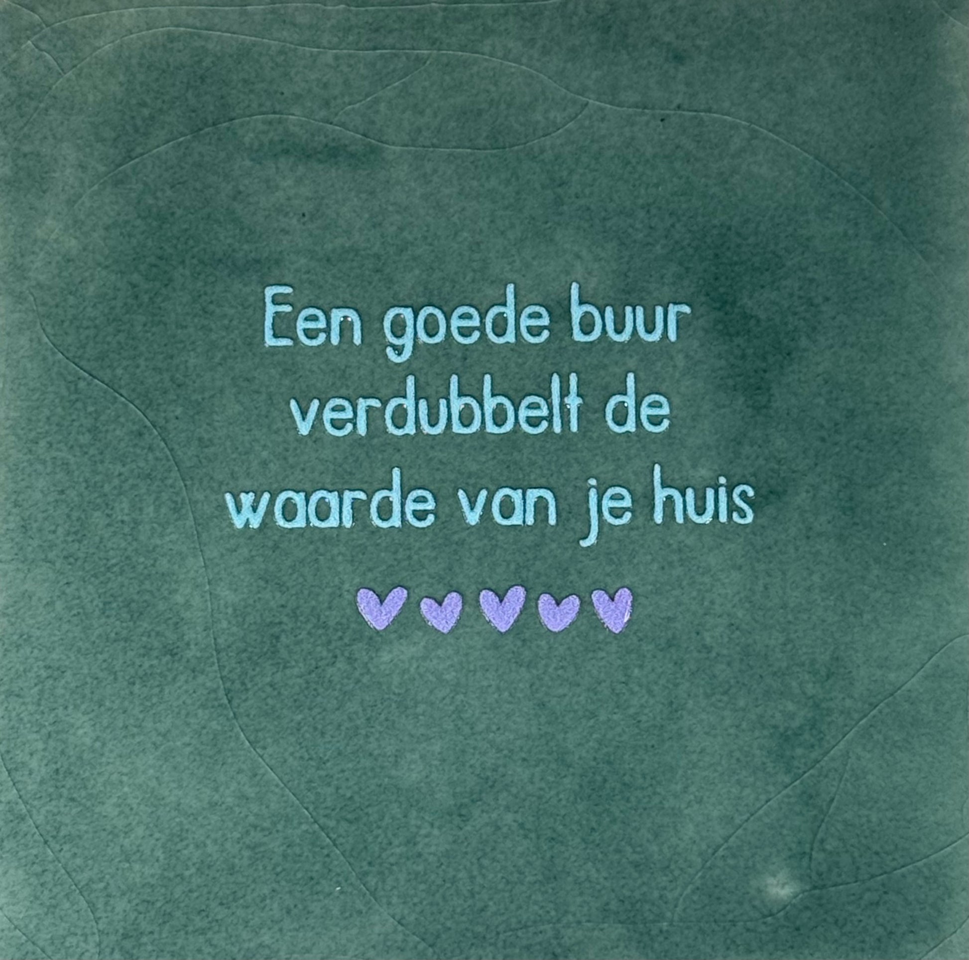 Quote tegeltje 'een goede buur verdubbelt...' zeegroen/warmblauw(lila)