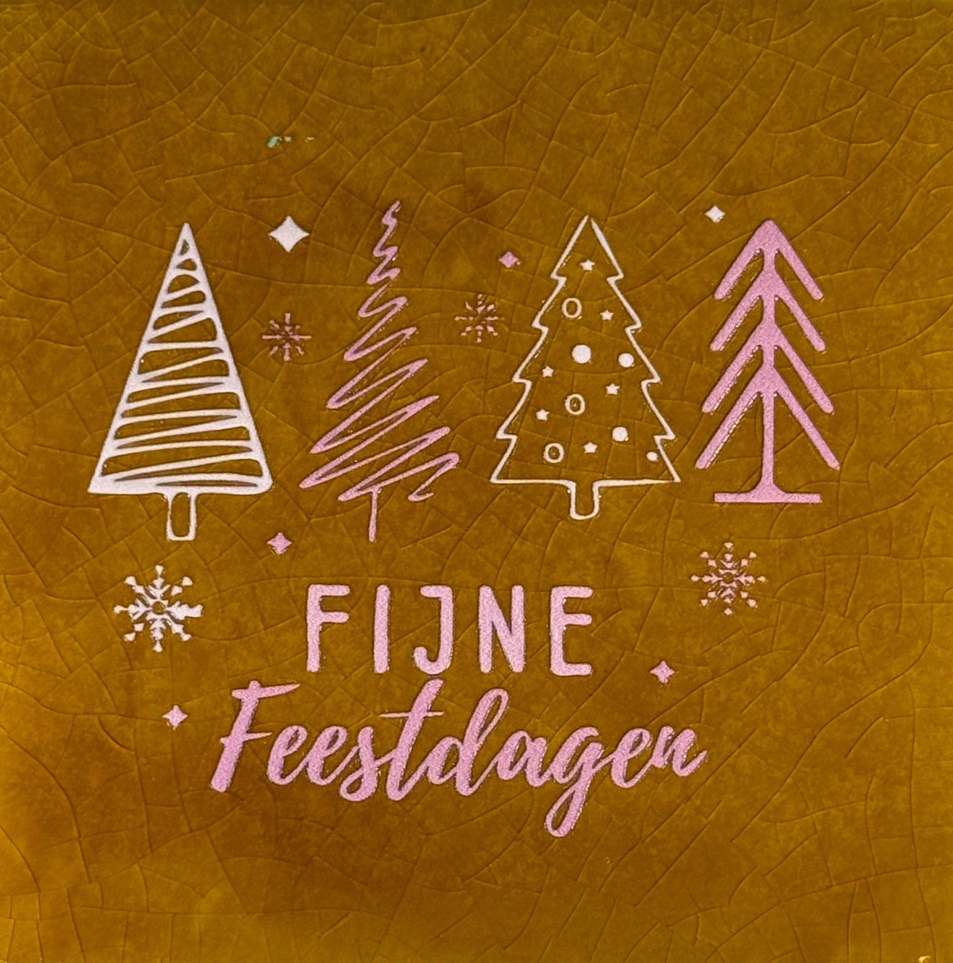 Quote tegeltje 'fijne feestdagen' 4 bomen oker/combi 2