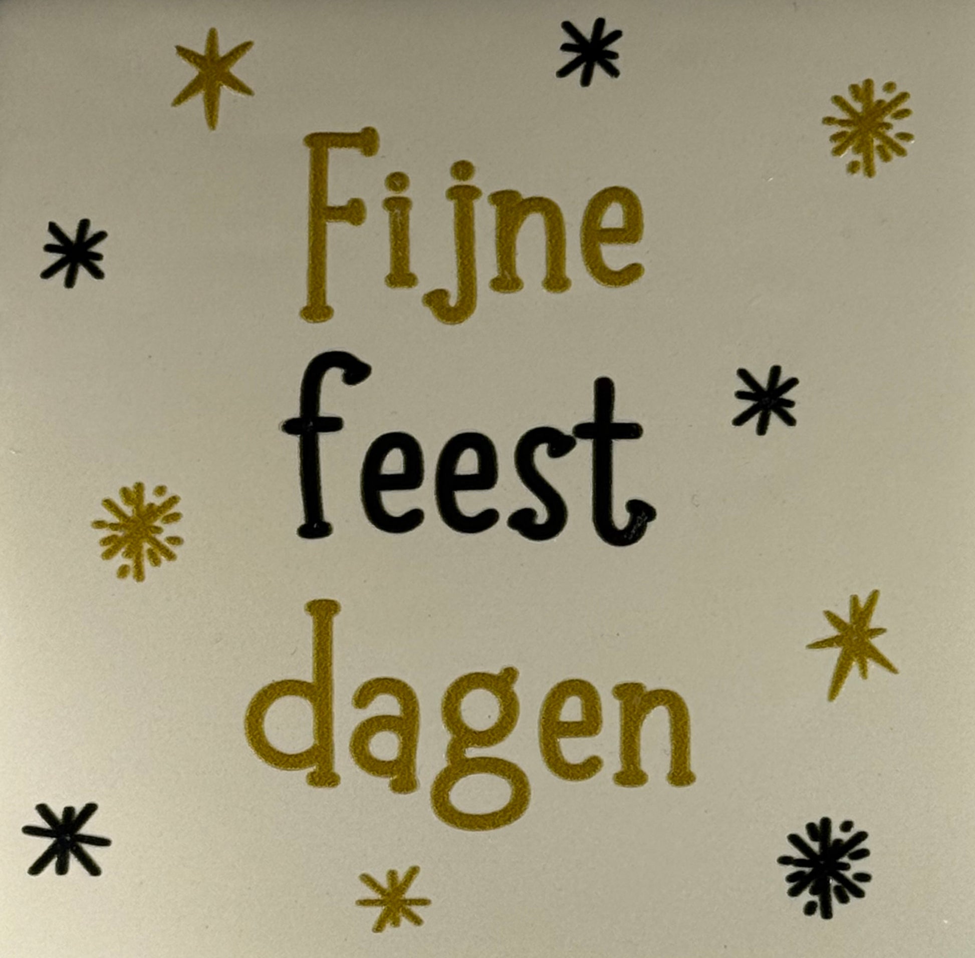 Quote tegeltje 'fijne feestdagen' sterren creme/goud(zwart)