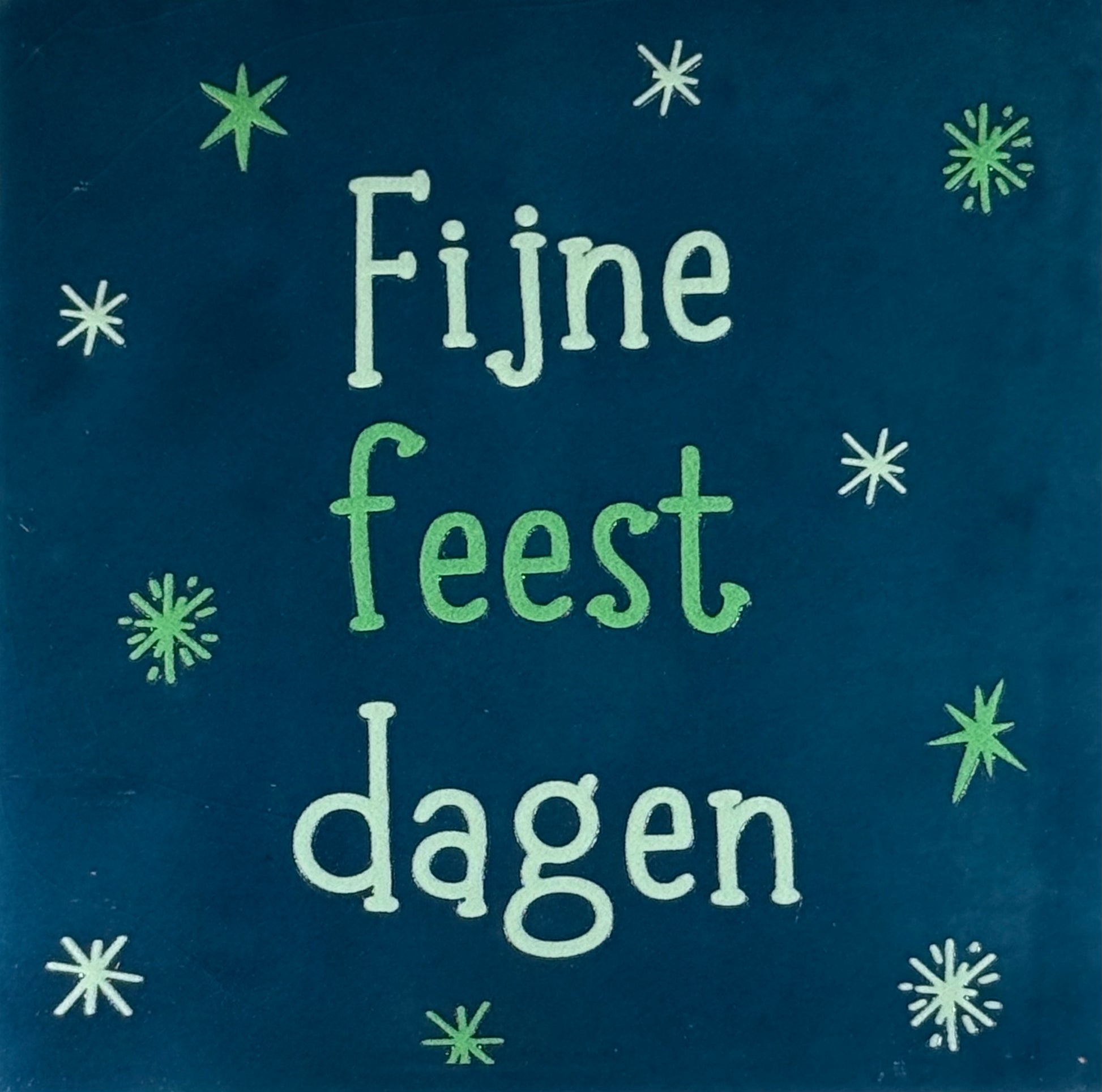 Quote tegeltje 'fijne feestdagen' sterren donkerblauw/lichtgroen(mint)