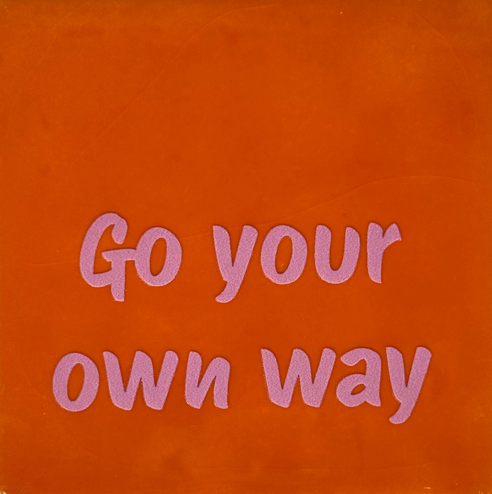 Quote tegeltje 'go your own way' oranje/warmroze