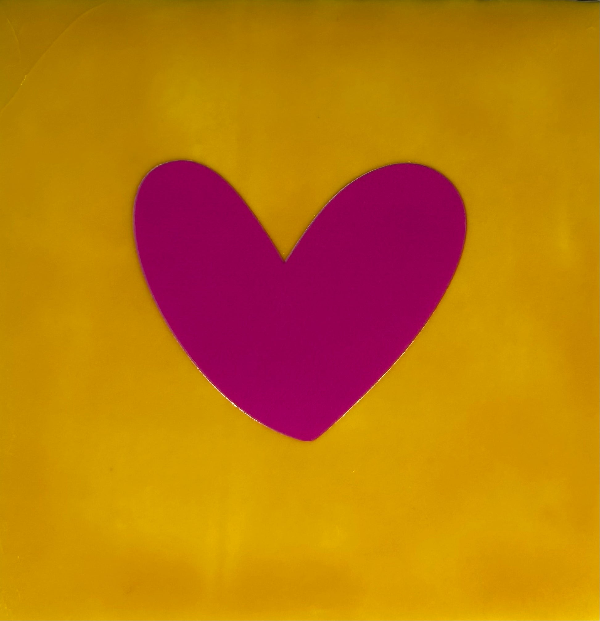 Quote tegeltje 'hartje dicht' nieuw geel/knalroze