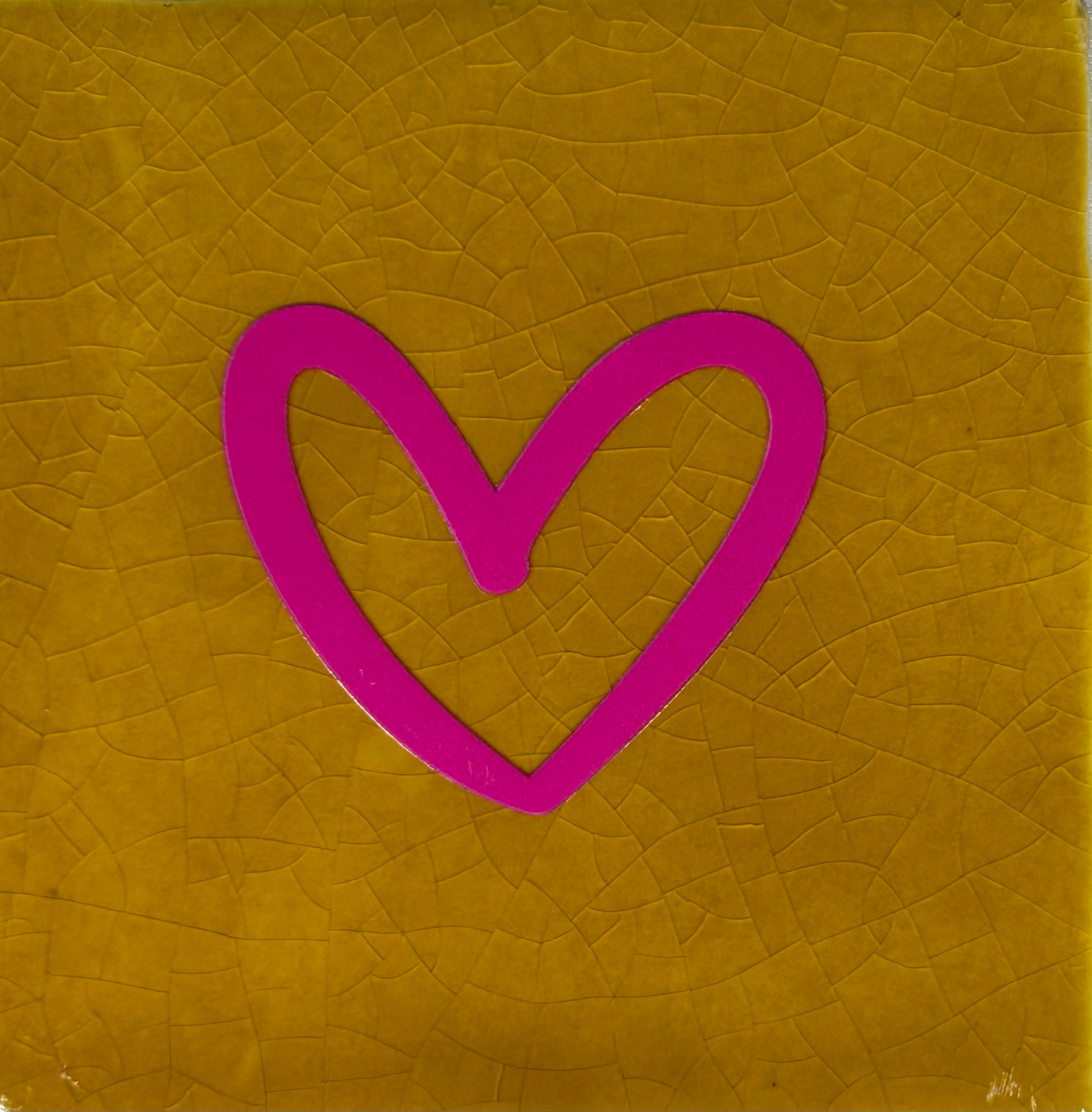 Quote tegeltje 'hartje open' nieuw oker/knalroze