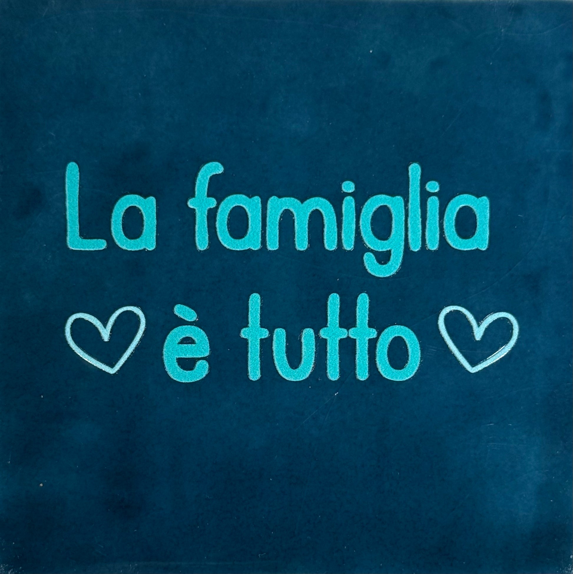 Quote tegeltje 'la famiglia è tutto' donkerblauw/turquoise (warmblauw)