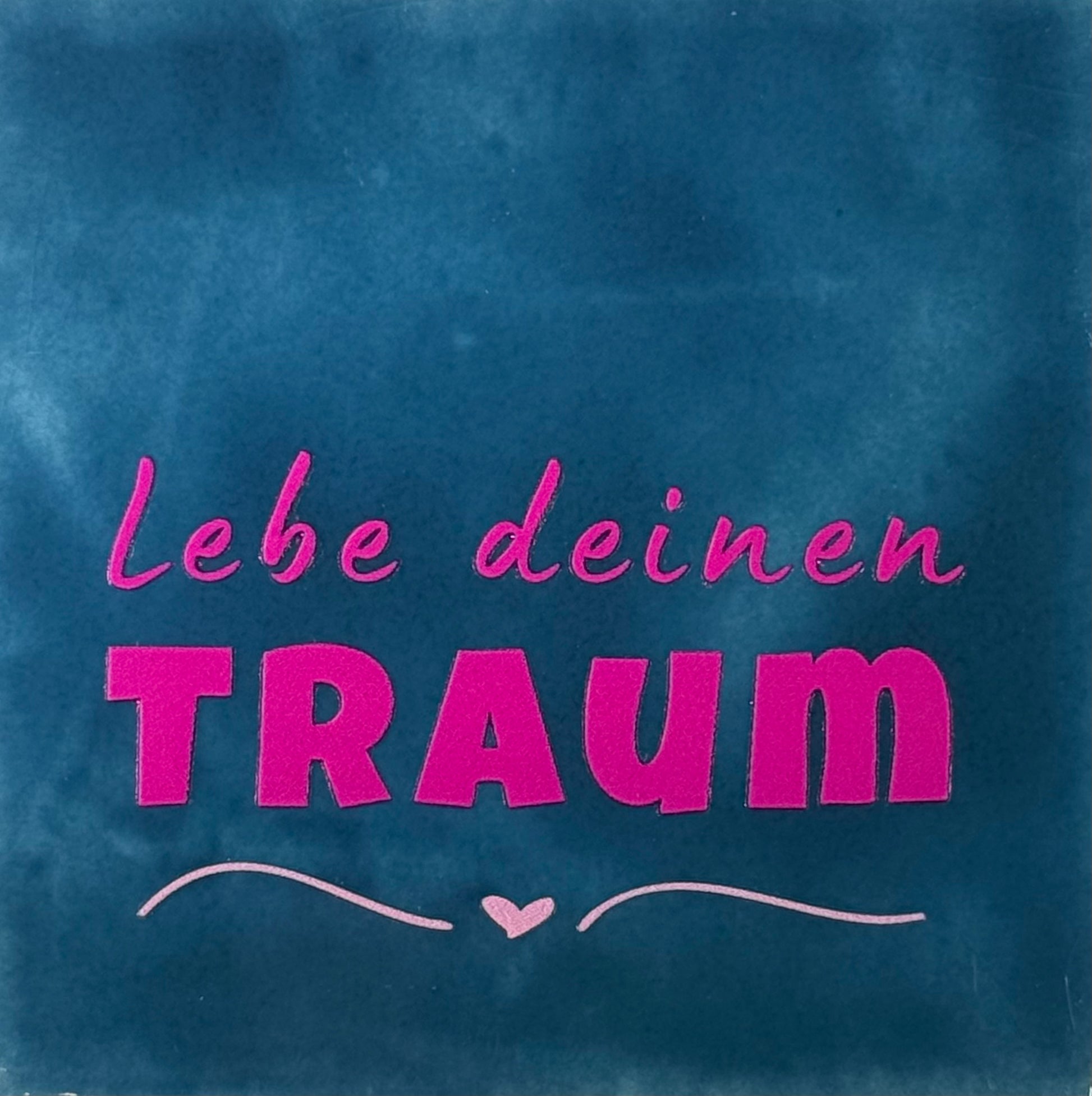 Quote tegeltje 'lebe deinen traum' donkerblauw/knalroze(warmroze)