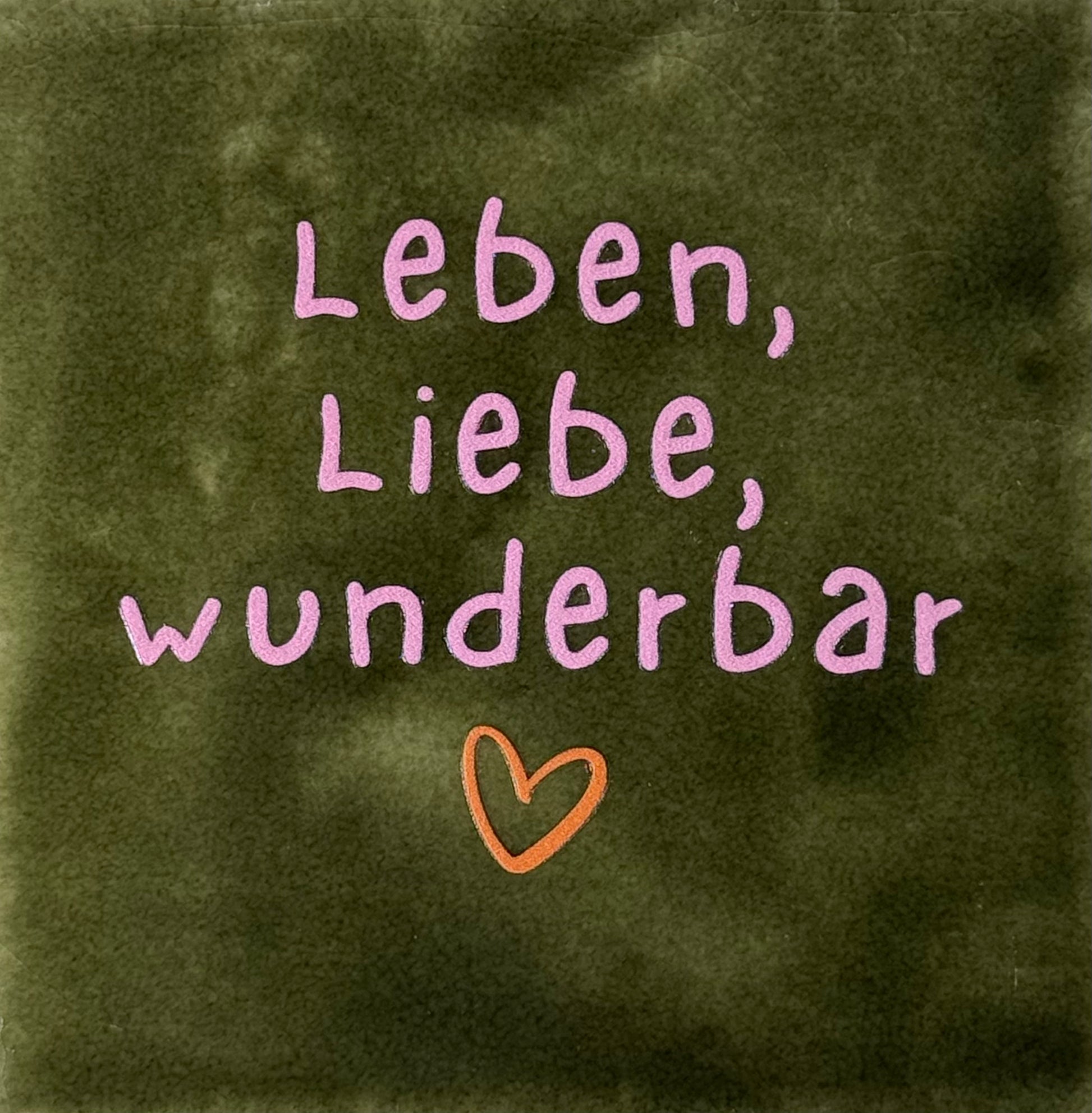 Quote tegeltje 'leben liebe wunderbar' olijf/warmroze(oranje)