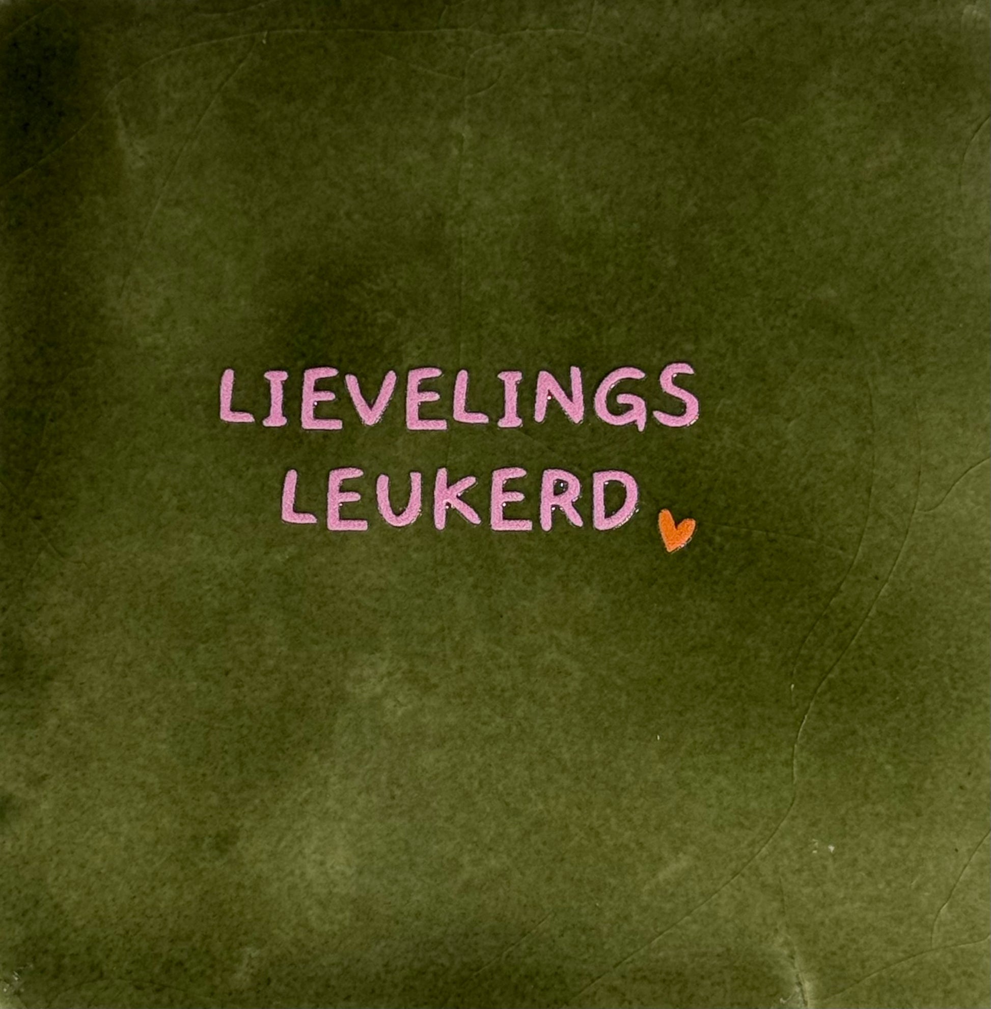 Quote tegeltje 'lievelingsleukerd' olijf/warmroze(oranje)