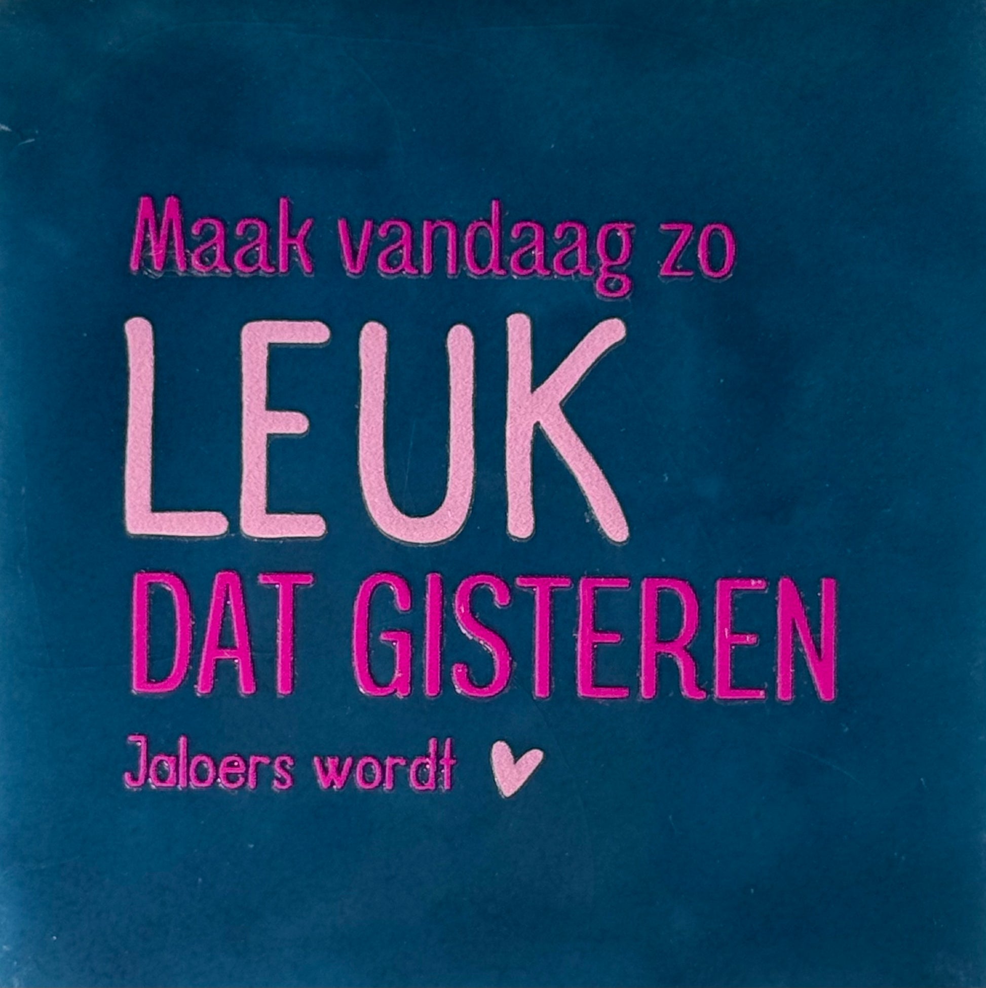 Quote tegeltje 'maak vandaag zo leuk...' donkerblauw/warmroze(knalroze)