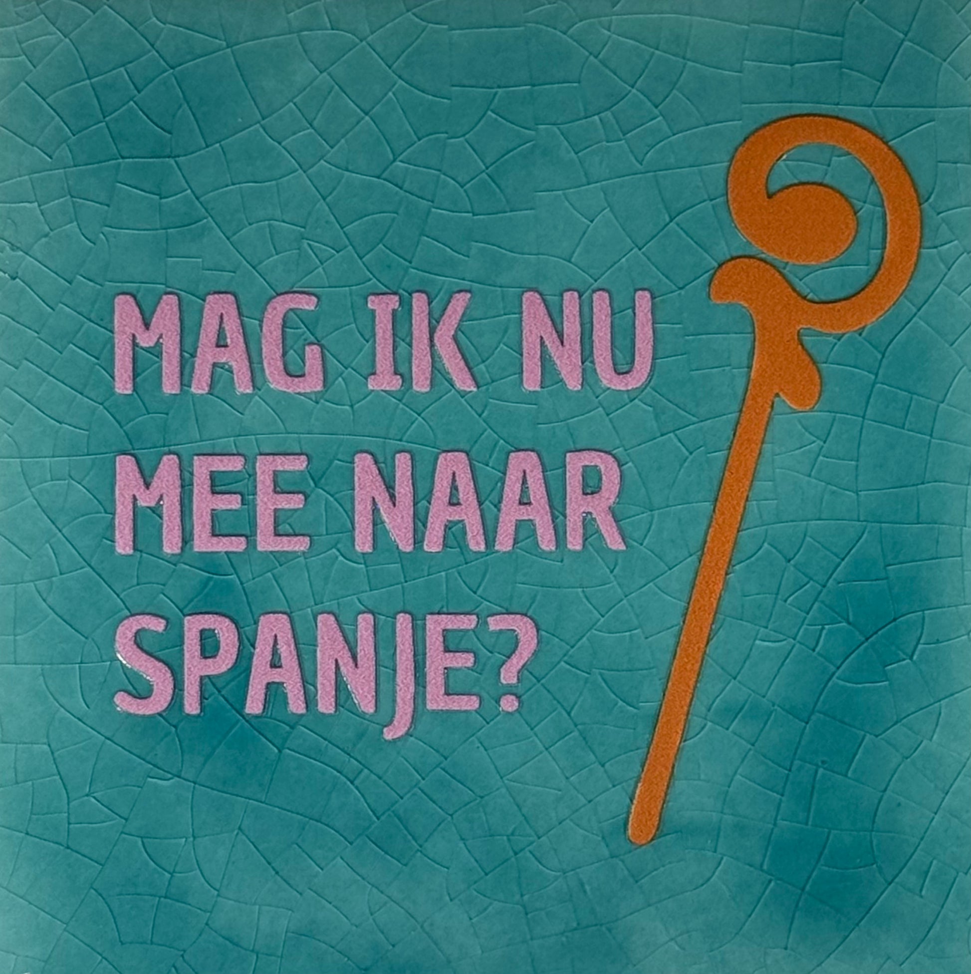 Quote tegeltje 'mag ik nu mee naar Spanje?' groen/warmroze(oranje)