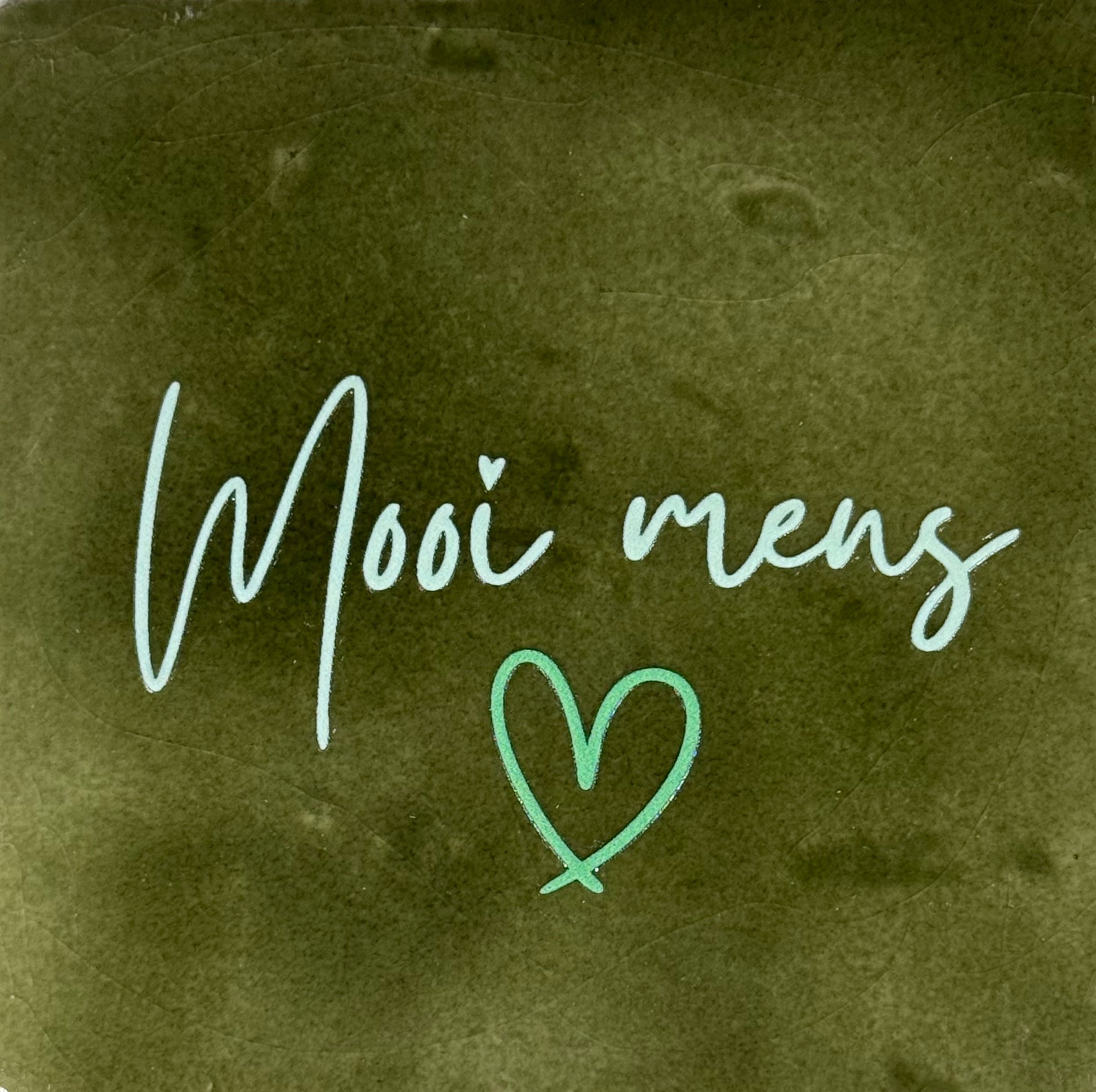 Quote tegeltje 'mooi mens' olijf/lichtgroen(mint)