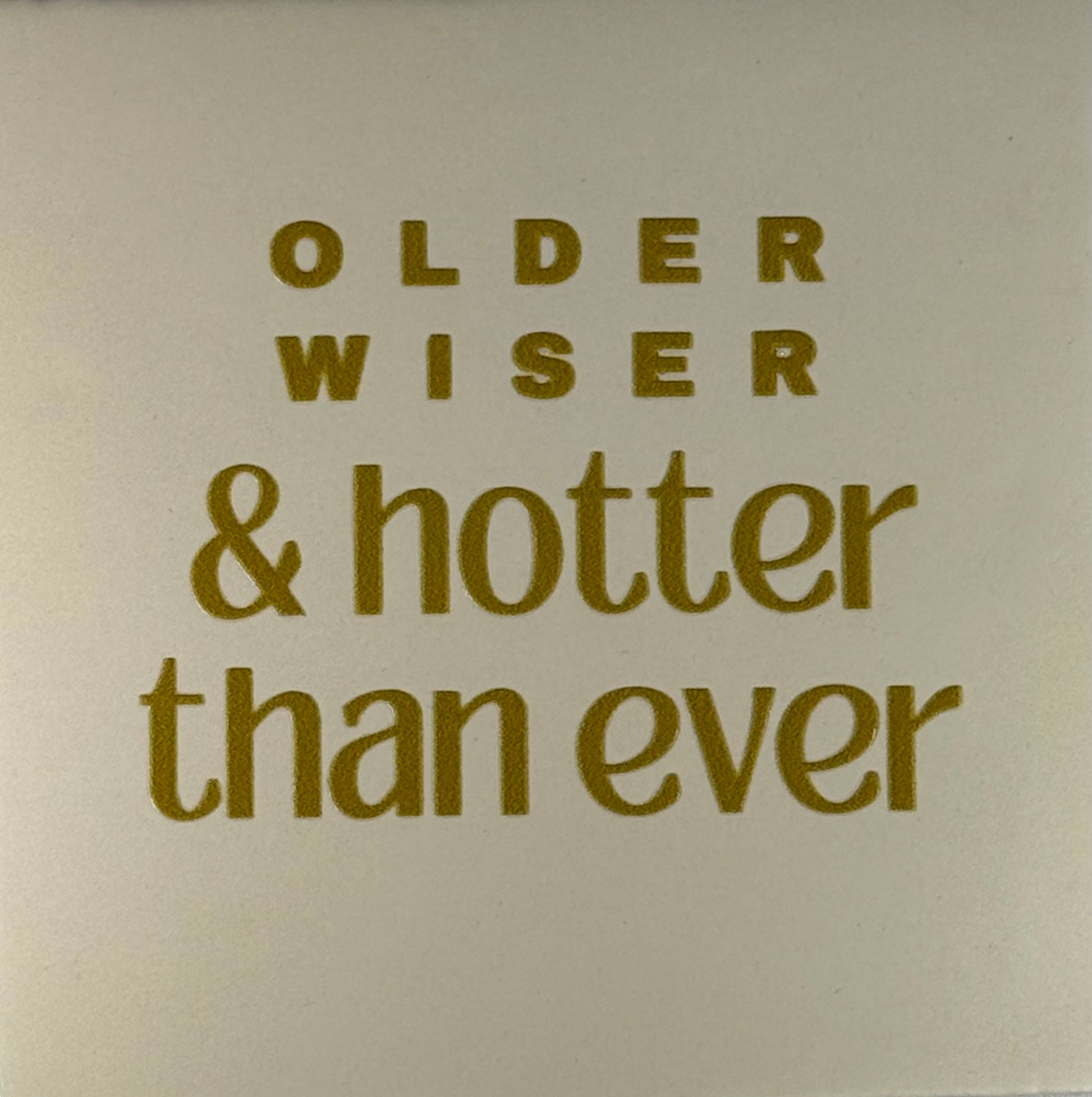 Quote tegeltje 'older wiser & hotter than ever' creme/goud