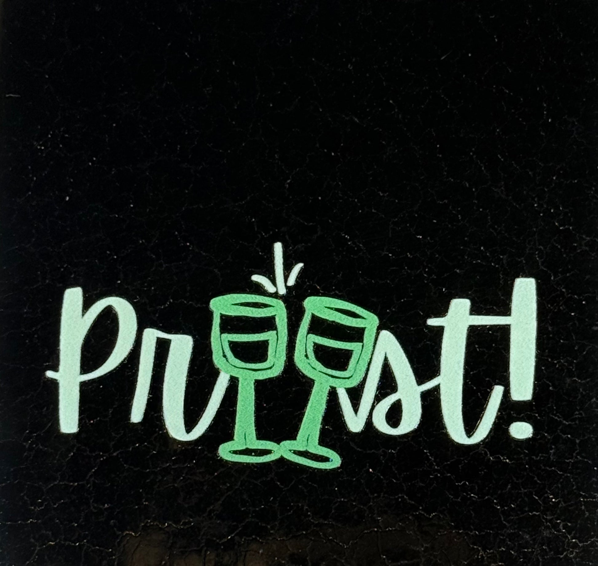 Quote tegeltje 'proost! glazen' goud/lichtgroen(mint)