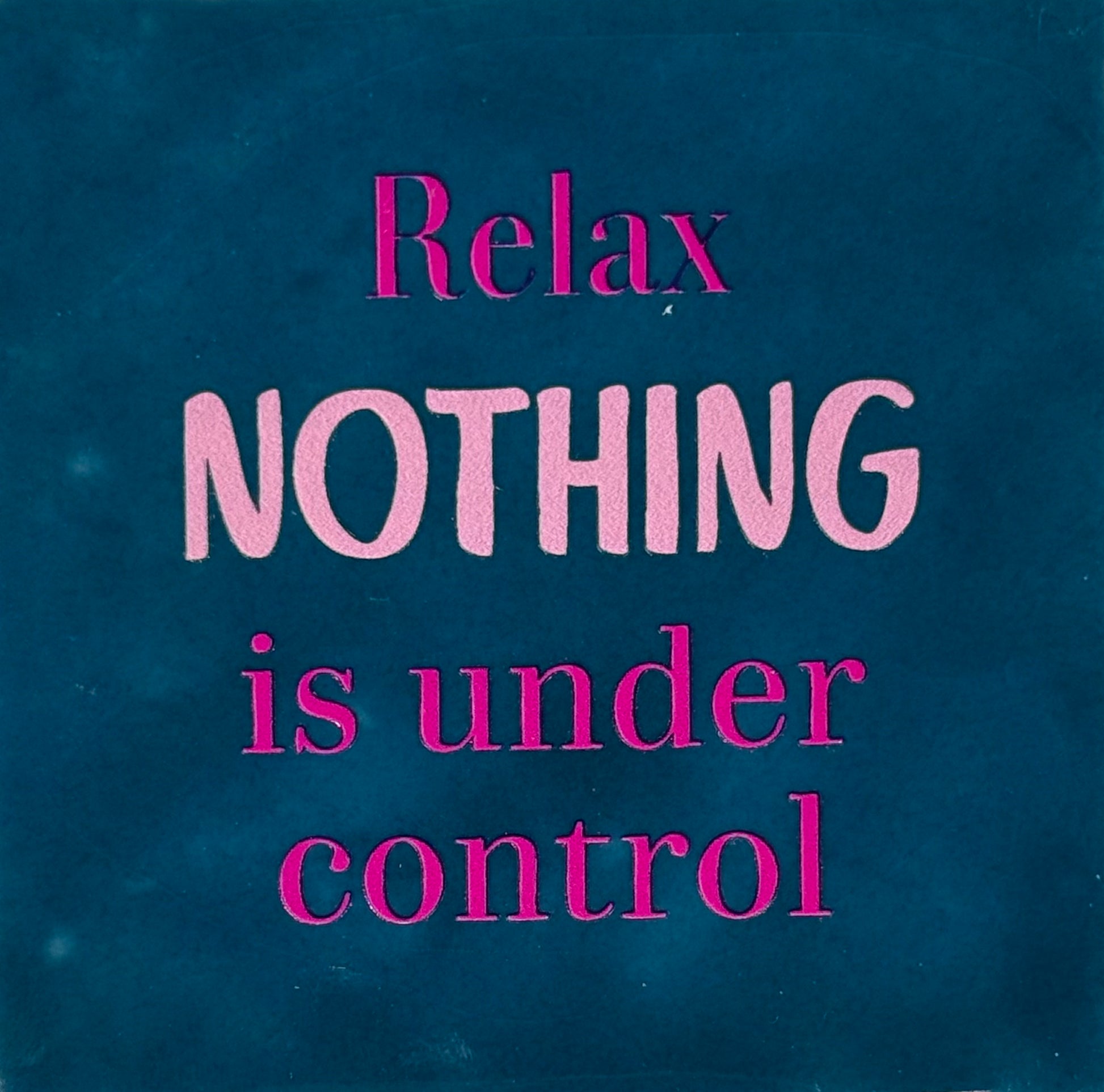 Quote tegeltje 'relax nothing is under control' donkerblauw/knalroze (warmroze)