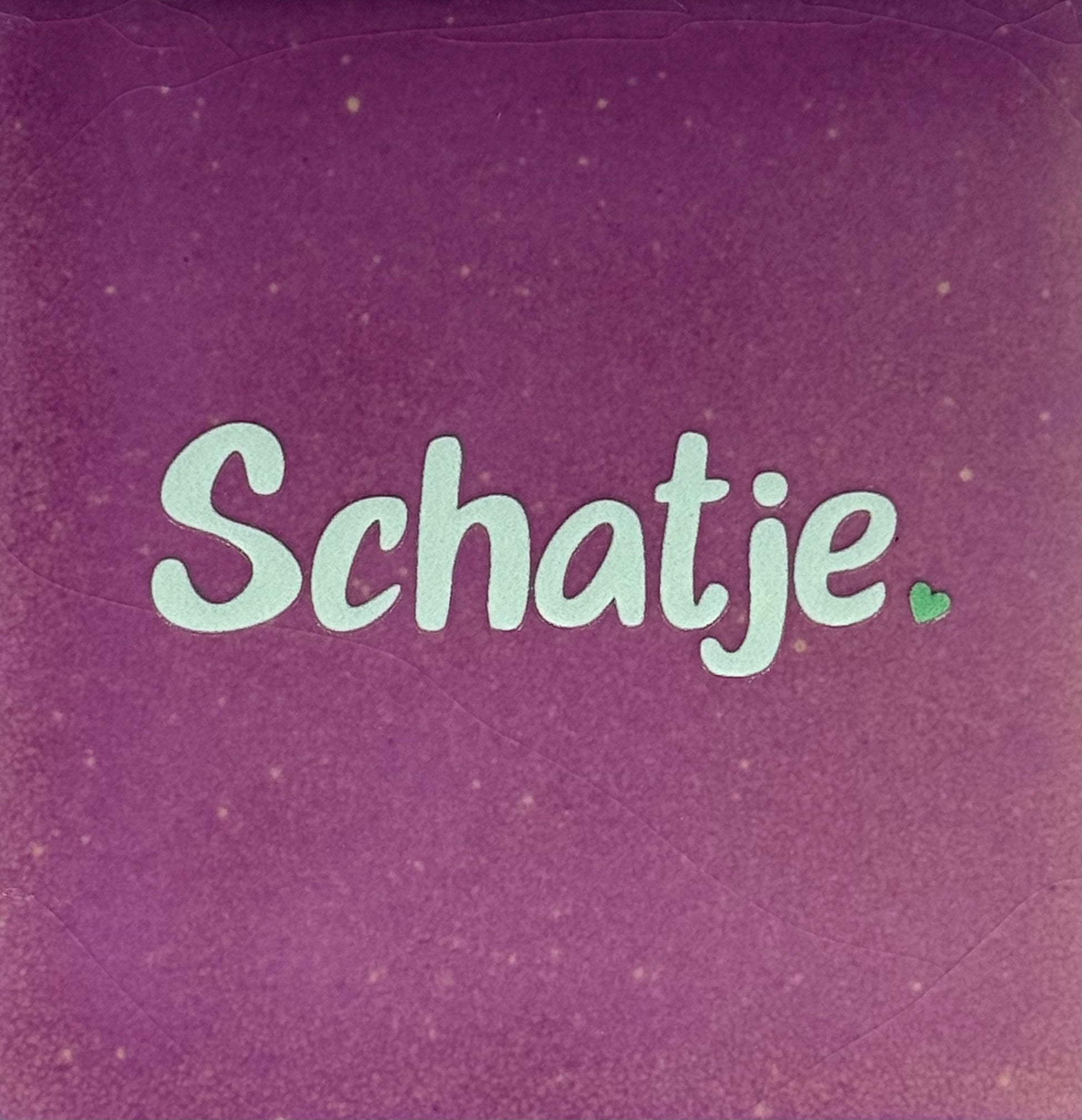 Quote tegeltje 'Schatje' nieuw lila/lichtgroen(mint)