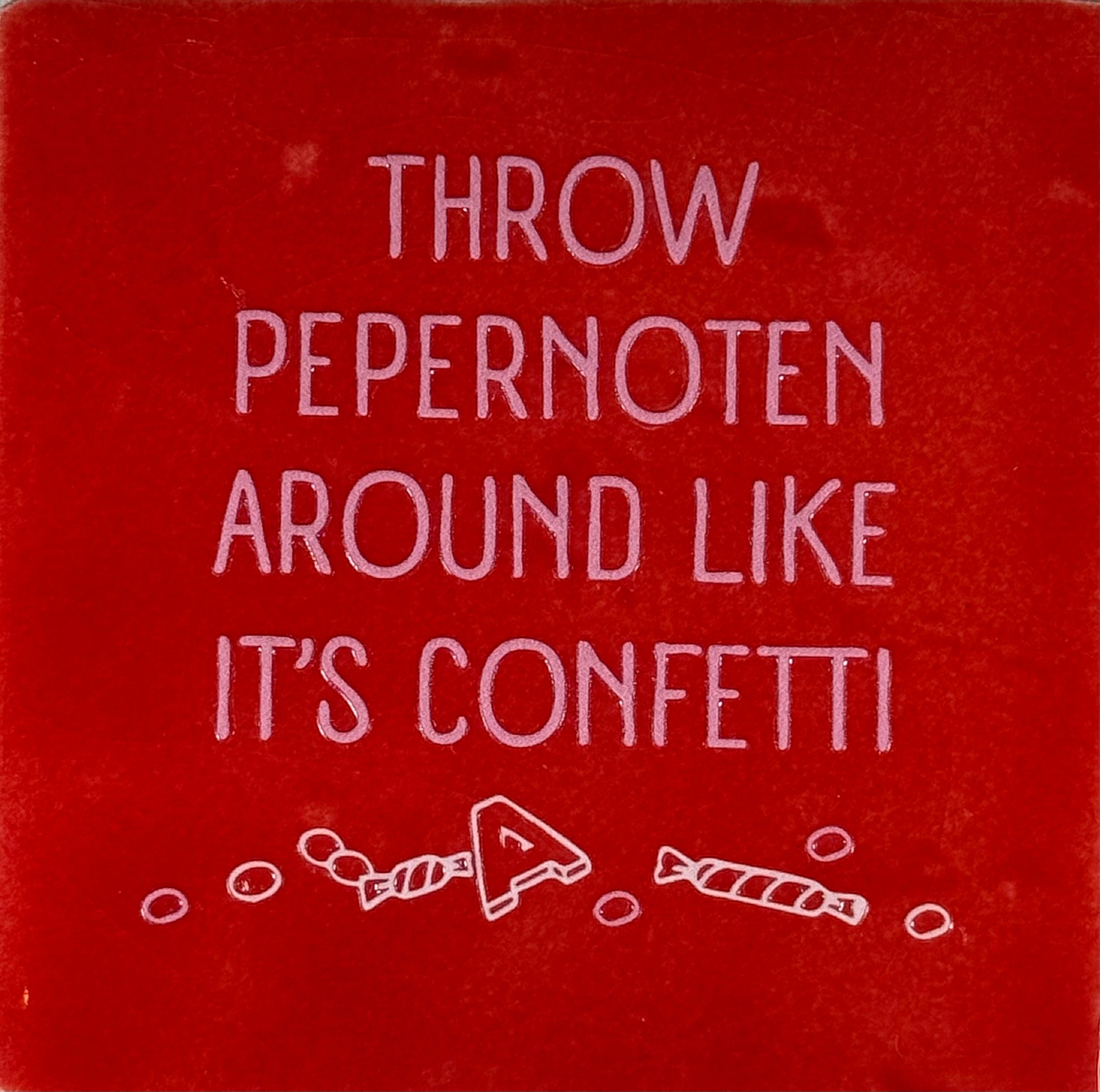 Quote tegeltje 'throw pepernoten around like it's confetti' rood/warmroze(creme)