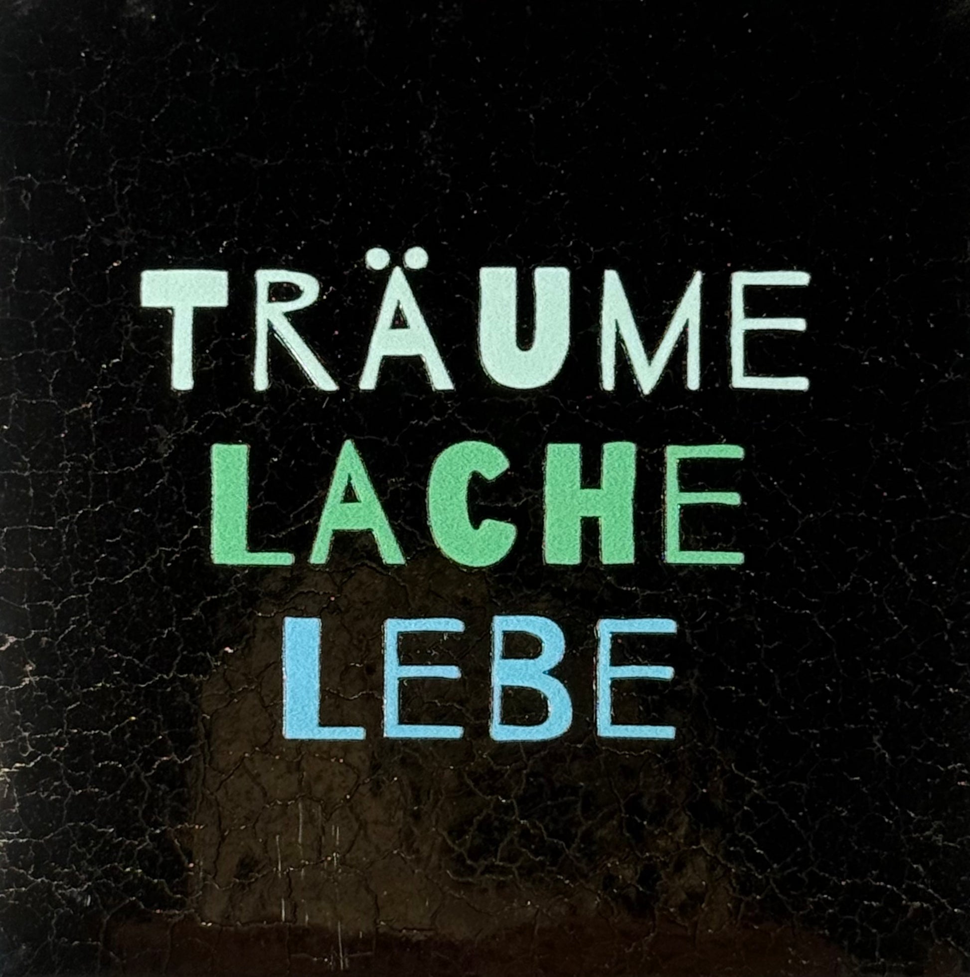 Quote tegeltje 'träume lache lebe' goud/lichtgroen(mint-warmblauw)