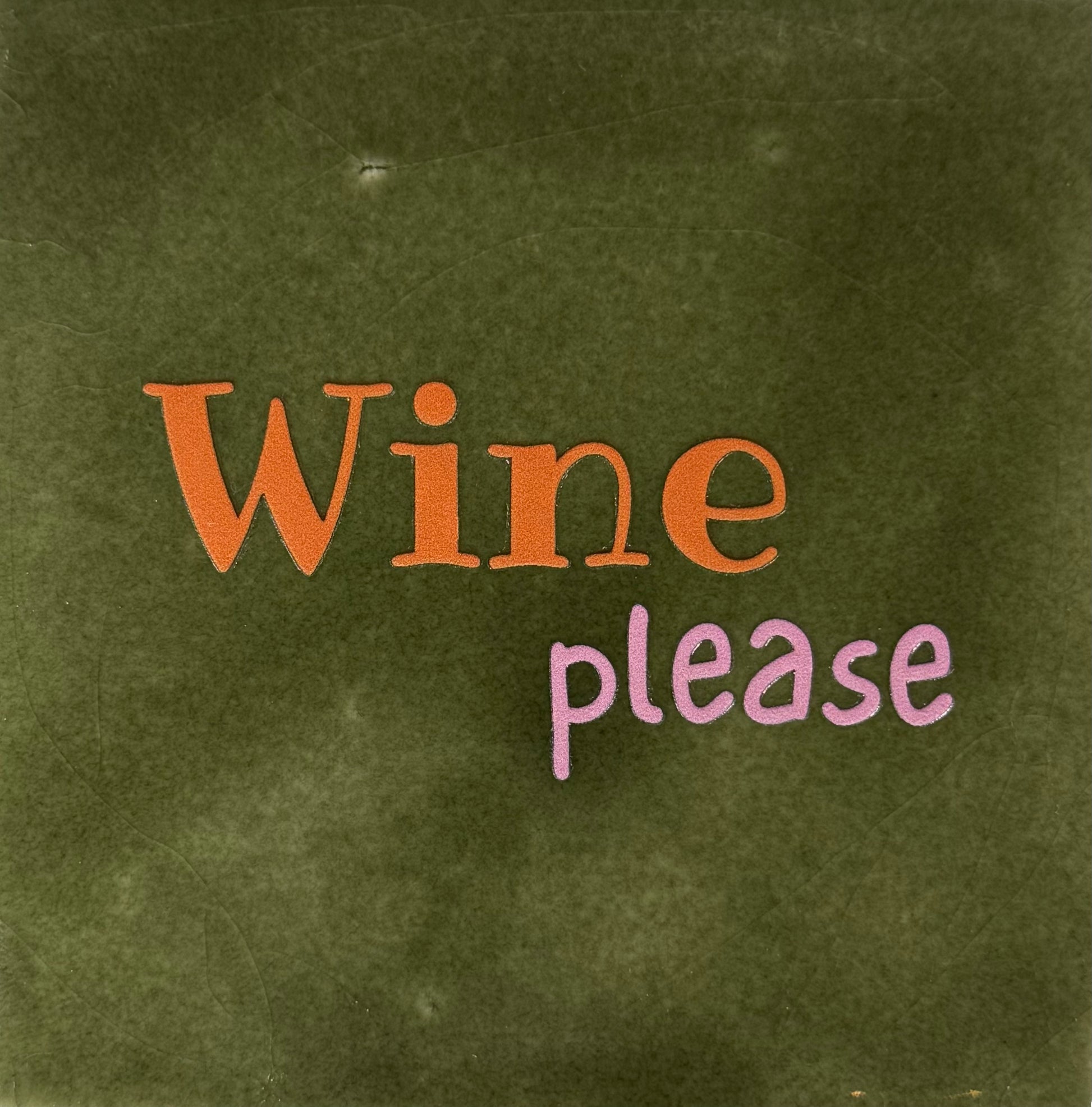 Quote tegeltje 'wine please' olijf/oranje(warmroze)