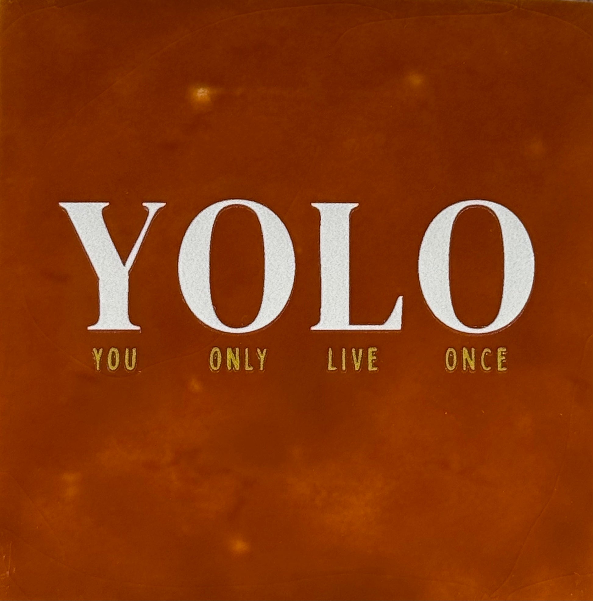 Quote tegeltje 'yolo' nieuw terra/creme(goud)